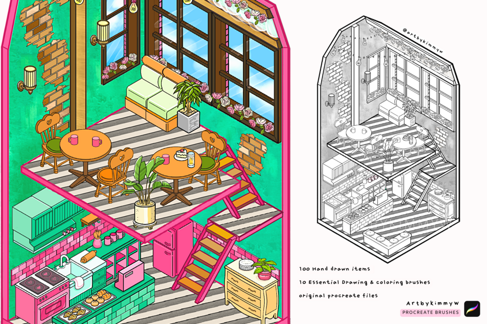 Procreate Isometric Cozy Cafe Stamp Pack