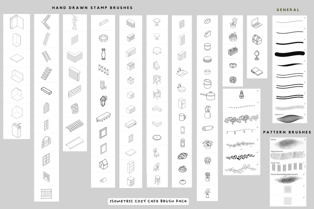 Last year I made my first Isometric Brush Pack, it became a bestseller. This year I made my second isometric pack with a cafe theme! I was inspired by many cafes I visited over the past one month in Seoul. I hope you will have lots of fun with this pack !