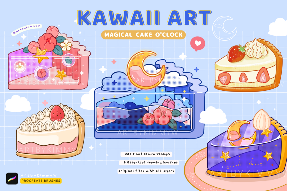 Procreate Kawaii Cake O'Clock Brush Pack
