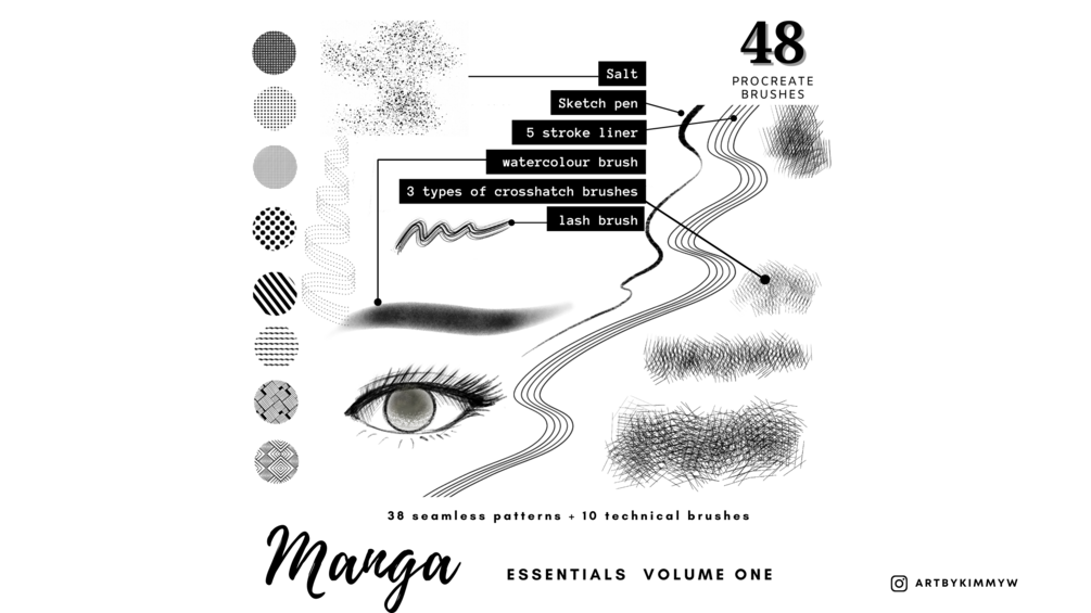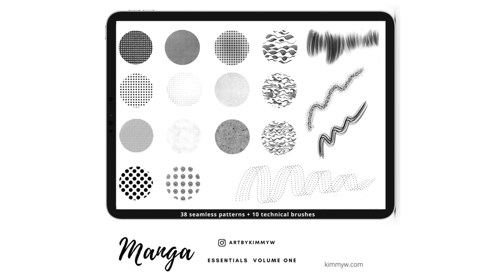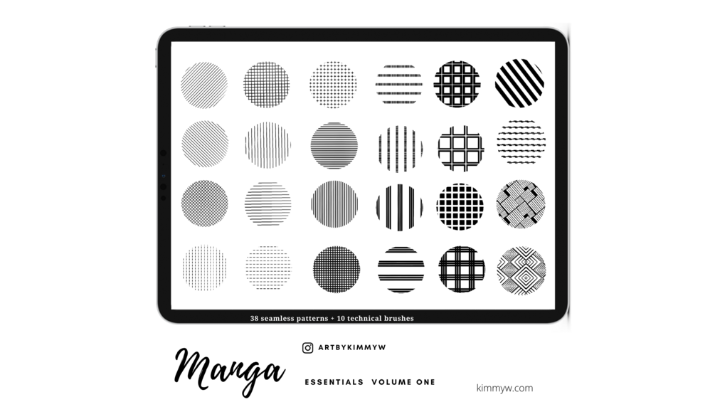 The seamless dotted and lined pattern brushes are must haves for every manga artists!